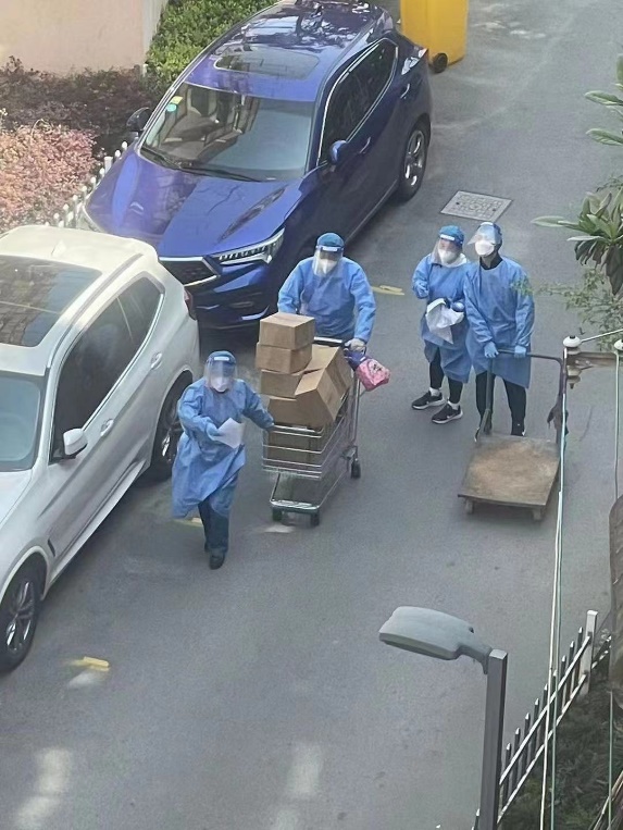 After her community was locked down, Zhou Jiachen from the Second League Branch of SSAM spread the policies of epidemic prevention among residents, collected domestic garbage, found out and reported residents' difficulties, picked up express parcels and take-out food for residents, and took care of pets for residents. Though her baby was young, Mou Ping, a young Party member, frequently assisted the community in nucleic acid testing and antigen testing in disregard of the sweat-soaked clothes beneath the protective suit. Counting and delivering vegetables was routine and complex, but she made timely deliveries without any omission.