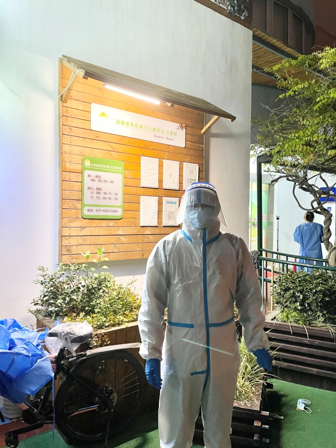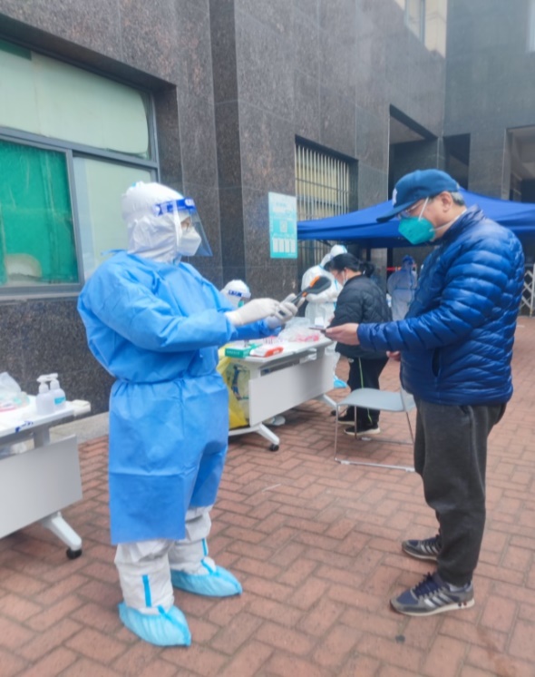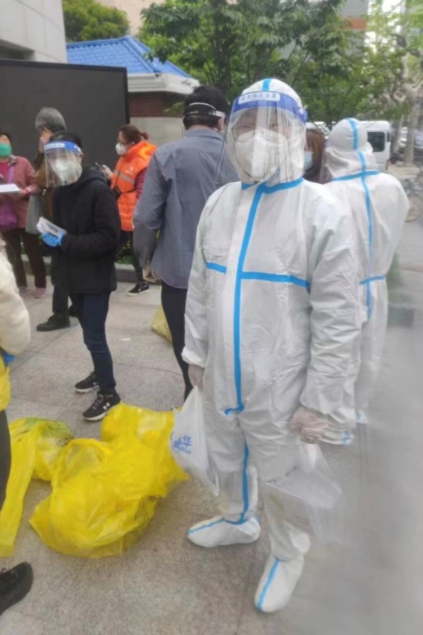Since the current epidemic outbreak, Chen Zhenpeng, Member of the CPC SIG Committee and Director of the Organization Department, has assisted his community in volunteer work, including nucleic acid testing, supplies carrying and resident service. Upon receiving a notice from the Organization Department of the CPC Jing'an District Committee on April 16, he, who had just taken off the protective suit, immediately hurried to the Zhangjiazhai Neighborhood Committee, Shimen Second Road Sub-district to which he would assist. There are nearly 3,000 residents in the large international communities and old-fashioned residential communities governed by the Zhangjiazhai Neighborhood Committee, the communities have complicated internal structures, and the epidemic situation was grim and complex in the communities. Upon reporting to the neighborhood committee, he immediately devoted himself to new volunteer work. He helped to carry vegetables, rice, oils and other supplies, scanned nucleic acid test code for 500-600 residents, stood in the scorching sun for 3-4 hours, often trotted in a hurry to deliver test supplies to 8-9 nucleic acid test points in the community, and sometimes took risks to go upstairs six-floor buildings closed down due to positive cases to deliver living supplies. As the leader of the volunteer team, after finishing a whole day of volunteer work, he would communicate with the team members in the volunteer WeChat group of SIG, to find out their working and living conditions, inspire them and boost their confidence, thereby bringing them together to develop new combative competitiveness.