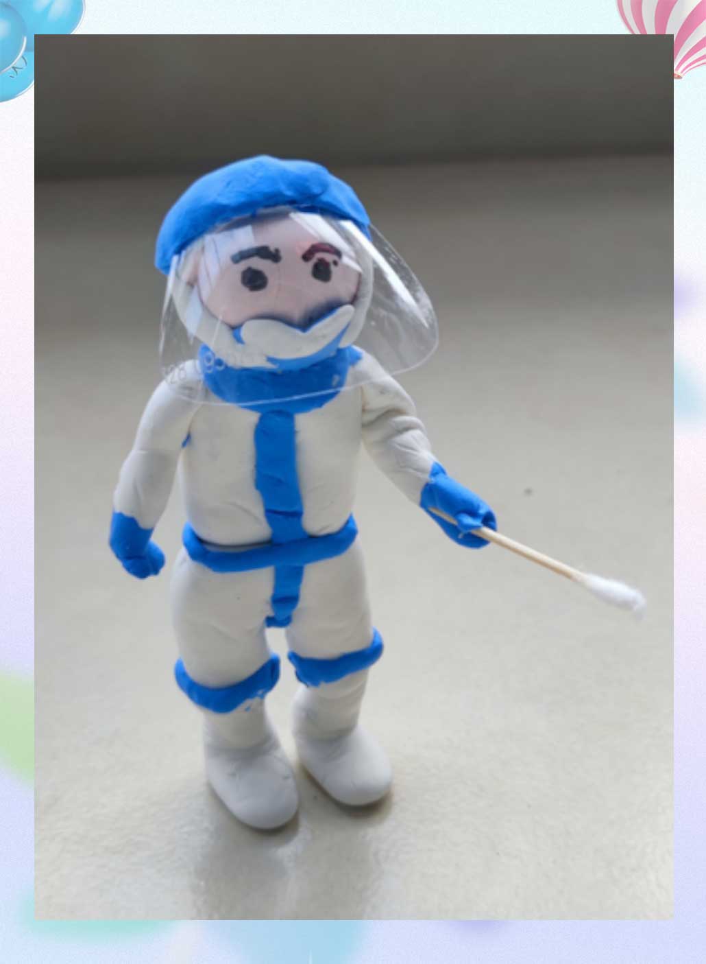 Painter's word: Baymax is the most beautiful view in the fight against the epidemic. With super light clay, I made a Baymax in a protective suit performing a nucleic acid test on residents attentively.