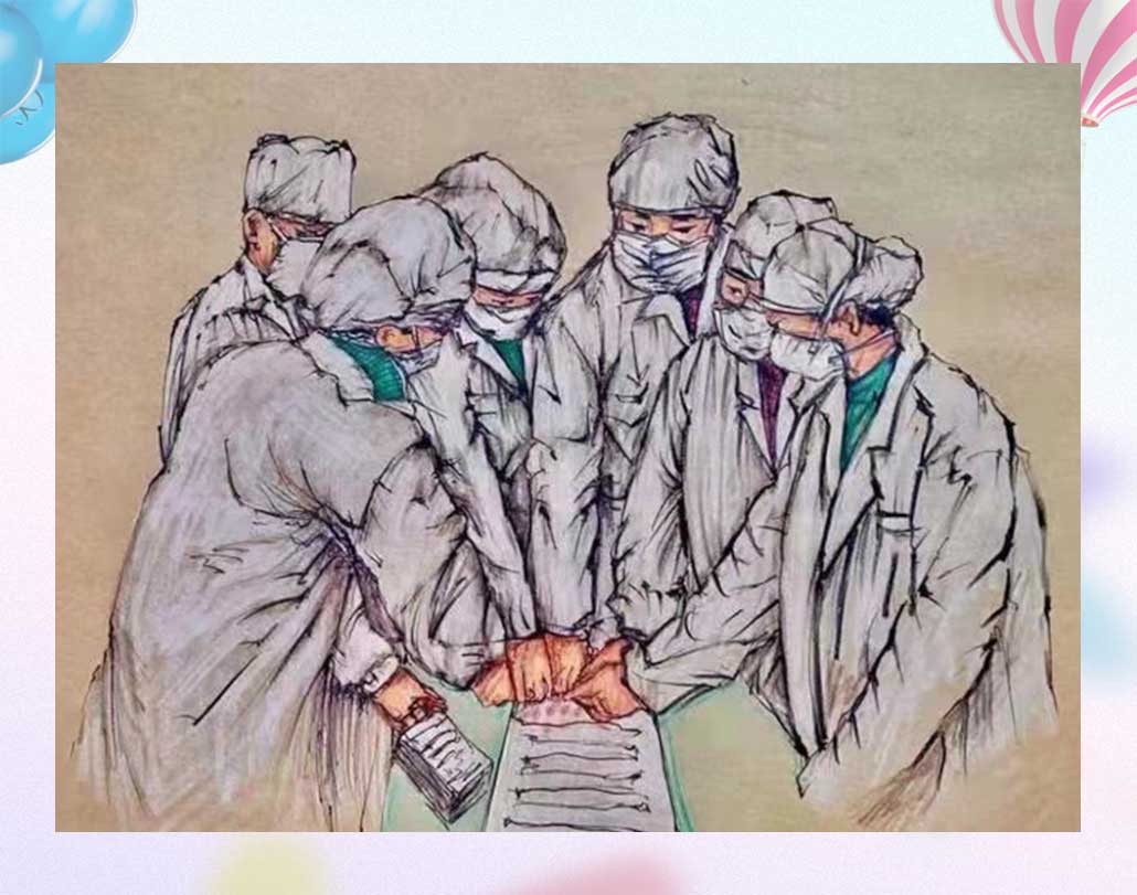 Painter's word: At the crucial moment, their requests for joining the medical team and the thumbprints they left are really touching! Salute angels in white and heroes in harm's way! There is no such thing as a peaceful world. We feel like so because someone take on the burdens!