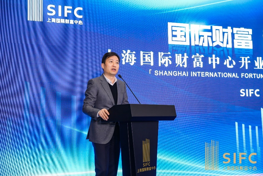 自贸区金桥管理局副局长、金桥管委会副主任严俊杰致辞,表示上海国际财富中心作为上海浦东金色中环发展带宣布以来第一个落成的5A甲级写字楼,必将成为金色中环上的新亮点。金桥管委会将继续关注入驻上海国际财富中心的企业的需求,支持每一家企业的发展。
