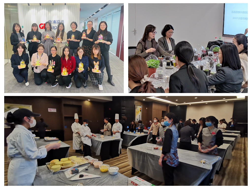 科创基金邀请专业花艺老师给女职工讲授插花知识、插花的艺术造型要素和技巧手法。金浦投资组织女职工开展“永生花DIY” 花艺沙龙活动。国和投资与上海机场投资公司联谊,共同制作“多肉微景观”。夏阳湖酒店工会因地制宜利用酒店优势,组织女同胞开展蛋糕DIY设计、饼干烘焙制作两项体验活动。